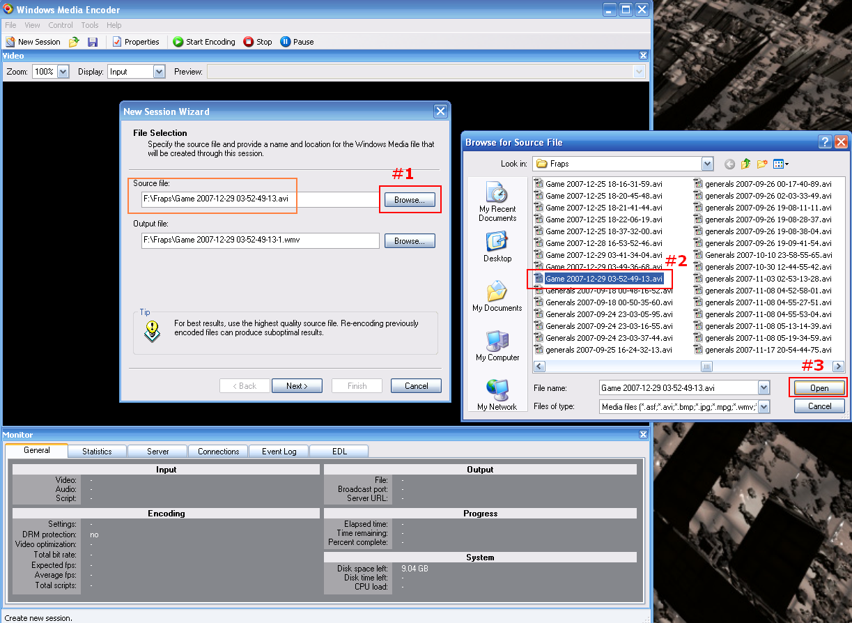 HERE IS HOW TO COMPRESS A FRAPS VIDEO USING WINDOWS MEDIA ENCODER: